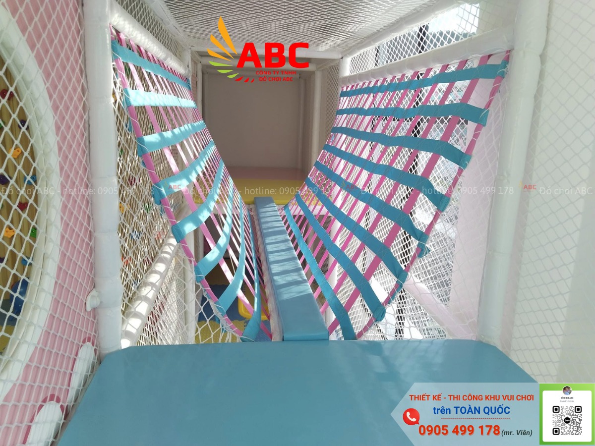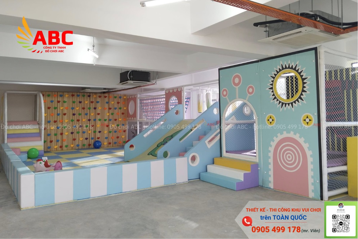 - Khu vui chơi tầm trung (80-200m2): Có nhà banh, cầu trượt, leo núi, hầm chui